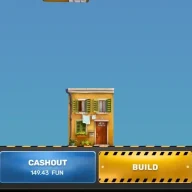 Fazes a tua aposta (de 0,10€ a 100€) e carregas em BUILD. Um guindaste começa a balançar um bloco acima do topo da torre. Clicas para o largar. Se aterrar alinhado com o andar anterior, a torre cresce e o multiplicador sobe. Se aterrar mal — mesmo por pouco — a estrutura desaba e a ronda termina.